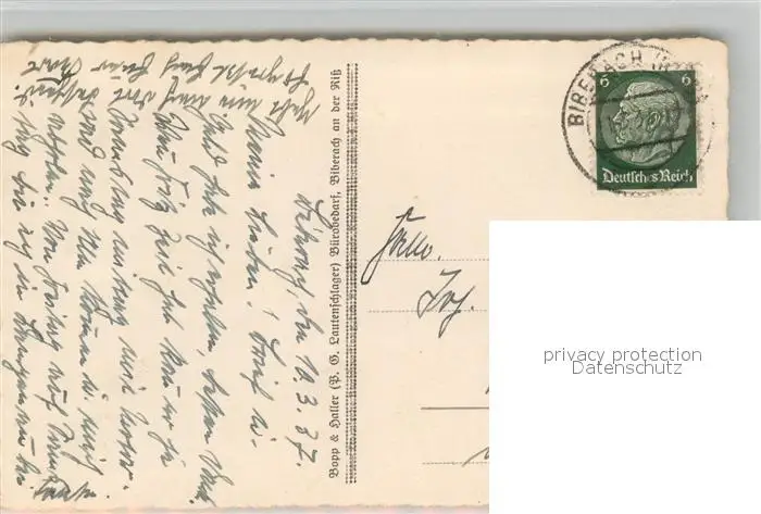 Biberach_Riss Marktplatz Biberach Riss postalisch gelaufen 1937 Erhaltung siehe scans [KathaD81] Kathoren