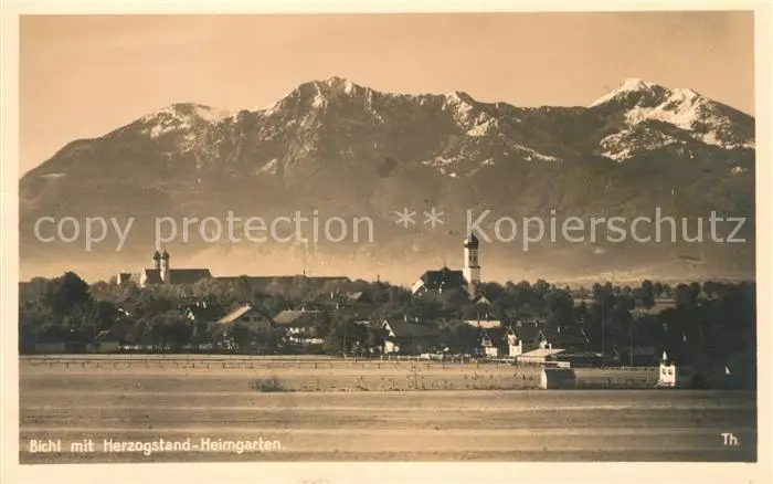 Bichl_Benediktbeuern Gesamtansicht mit Herzogstand Heimgarten Bichl Benediktbeuern postalisch gelaufen 1921-1965 Erhaltung siehe scans [FriedD77] Frierer