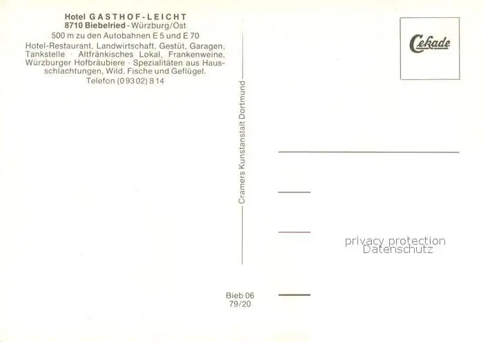 Biebelried Hotel Gasthof Leicht Restaurant Biebelried postalisch nicht gelaufen 1979 Erhaltung siehe scans [FriedD77] Frierer