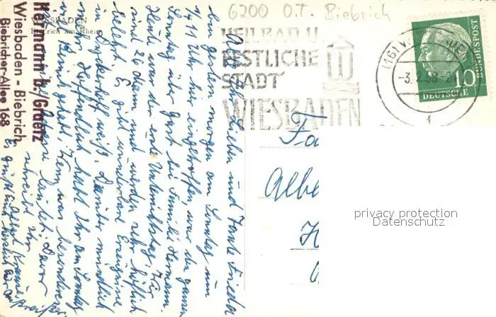 Biebrich_Wiesbaden Anlegestelle mit Schiff Biebrich_Wiesbaden postalisch gelaufen 1958 Erhaltung siehe scans [LiesaD40] LiesID40