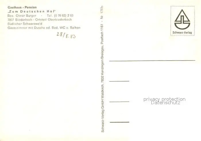 Biederbach_Schwarzwald Gasthaus Pension Zum Deutschen Hof Terrasse Gaststube Panorama Biederbach Schwarzwald postalisch nicht gelaufen 1983 Erhaltung siehe scans [WerneD78] WernPID7