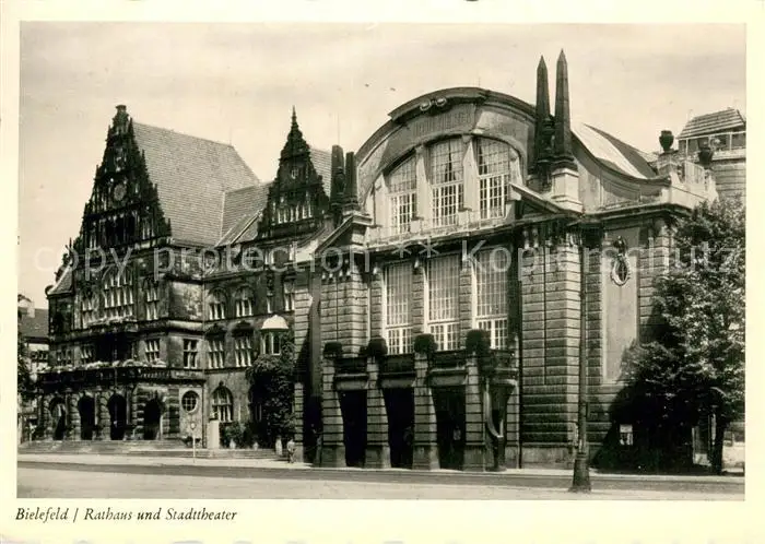 AK / Ansichtskarte Bielefeld Rathaus und Stadttheater Bielefeld