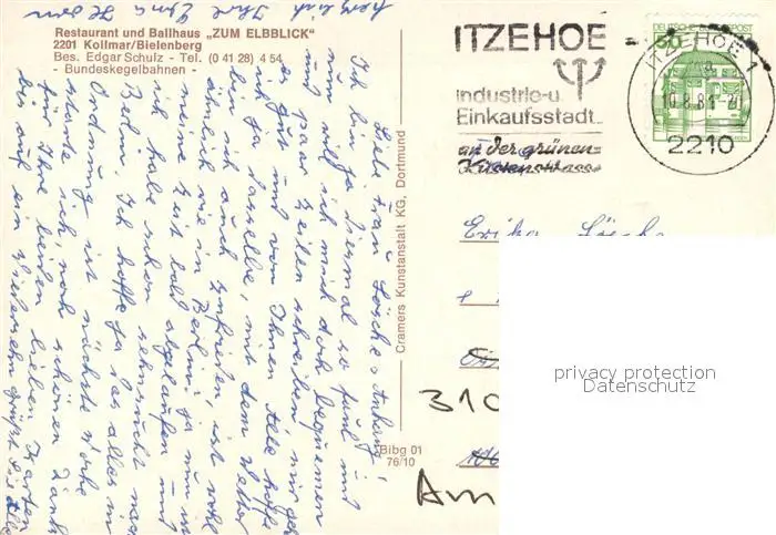 Bielenberg Restaurant Zum Elbblick Kegelbahn Fliegeraufnahme Bielenberg postalisch gelaufen 1981 Erhaltung siehe scans [FriedD77] Frierer