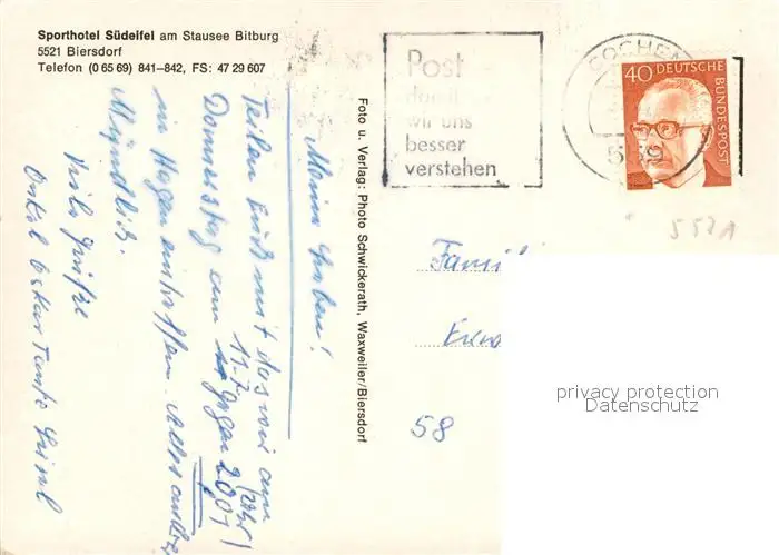 Biersdorf_See Sporthotel Suedeifel am Stausee Bitburg Biersdorf See postalisch gelaufen 1974 Erhaltung siehe scans [FriedD77] Frierer