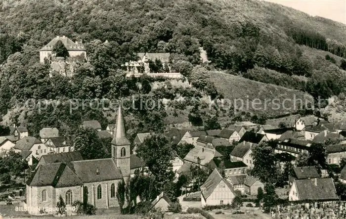 AK / Ansichtskarte Bilstein_Sauerland Ortsansicht mit Kirche Blick zum Schloss Bilstein_Sauerland