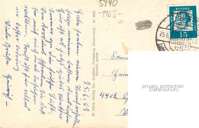 Bilstein_Sauerland Ortsansicht mit Kirche Blick zum Schloss Bilstein_Sauerland postalisch gelaufen 1963 Erhaltung siehe scans [FriedD77] Frierer