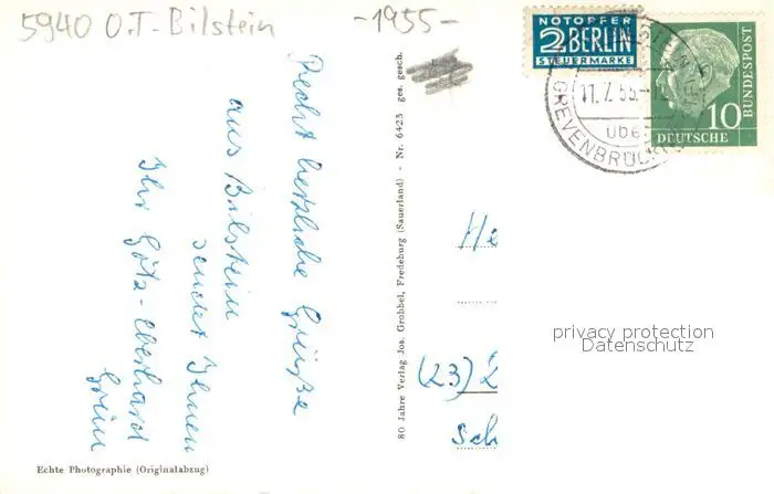 Bilstein_Sauerland Ortsansicht mit Kirche Blick zum Schloss Bilstein_Sauerland postalisch gelaufen 1955 Erhaltung siehe scans [FriedD77] Frierer