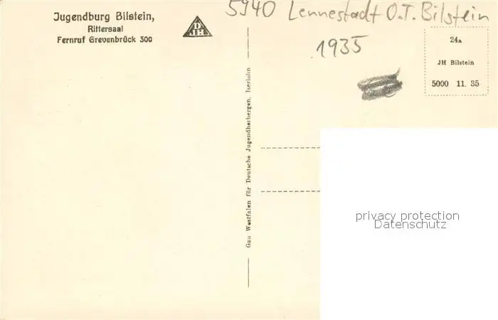 Bilstein_Sauerland Rittersaal Jugendburg Bilstein_Sauerland postalisch nicht gelaufen 1935 Erhaltung siehe scans [FriedD77] Frierer