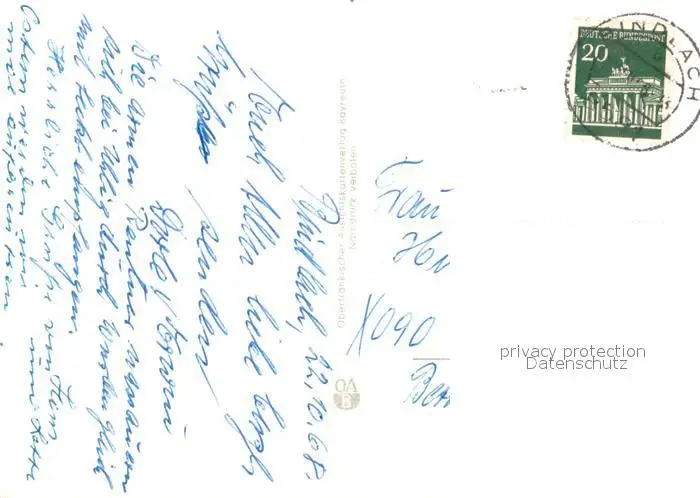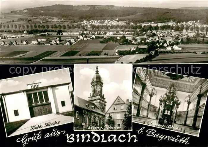 Bindlach Fliegeraufnahme Kath Kirche Ev Kirche Inneres Bindlach postalisch gelaufen 1968 Erhaltung siehe scans [WerneD78] WernPID7