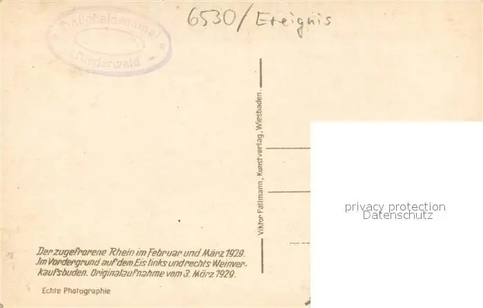 Bingen_Rhein Der Rhein im Eis bei Bingen mit Maeuseturm und Ruine Ehrenfels Bingen Rhein postalisch nicht gelaufen 1929 Erhaltung siehe scans [WerneD78] WernPID7