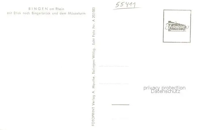 Bingen_Rhein Fliegeraufnahme mit Blick nach Bingerbrueck und dem Maeuseturm Bingen Rhein postalisch nicht gelaufen 1921-1965 Erhaltung siehe scans [WerneD78] WernPID7