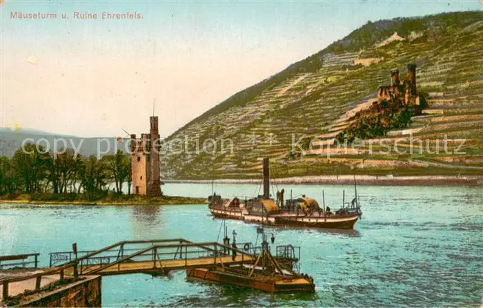 AK / Ansichtskarte Bingen_Rhein Maeuseturm und Ruine Ehrenfels Anlegestelle Bingen Rhein