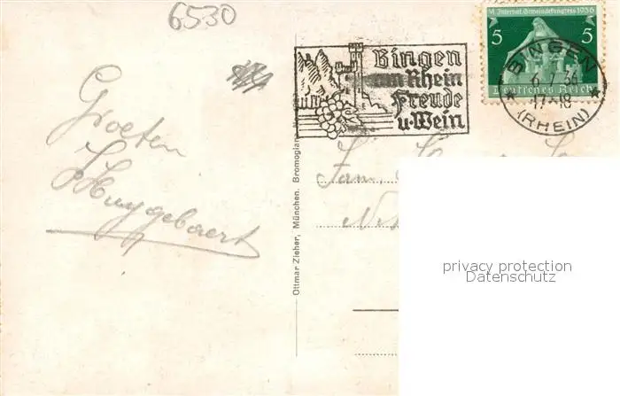 Bingen_Rhein Panorama Bingen Rhein postalisch gelaufen 1936 Erhaltung siehe scans [WerneD78] WernPID7