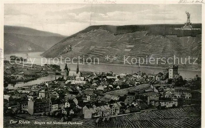 Bingen_Rhein Rhein mit Nationaldenkmal Bingen Rhein postalisch gelaufen 1935 Erhaltung siehe scans [LiesaD40] LiesID40