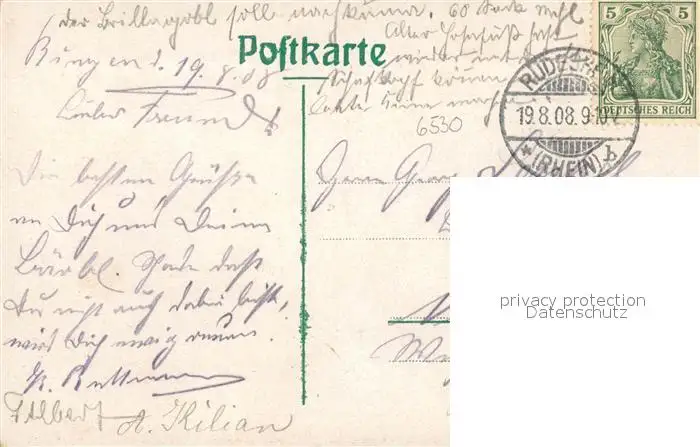 Bingen_Rhein Rheinpartie Bingen Rhein postalisch gelaufen 1908 Erhaltung siehe scans [LiesaD40] LiesID40