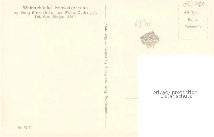 Bingen_Rhein Waldschaenke Schweizerhaus Bingen Rhein postalisch nicht gelaufen 1921-1965 Erhaltung siehe scans [KathaD81] Kathoren