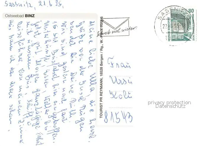 Binz_Ruegen Fliegeraufnahme Binz_Ruegen postalisch gelaufen 1995 Erhaltung siehe scans [WerneD78] WernPID7