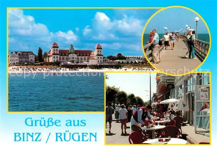 AK / Ansichtskarte Binz_Ruegen Kurhaus Musikpavillon Seebruecke Strassencafe Binz_Ruegen