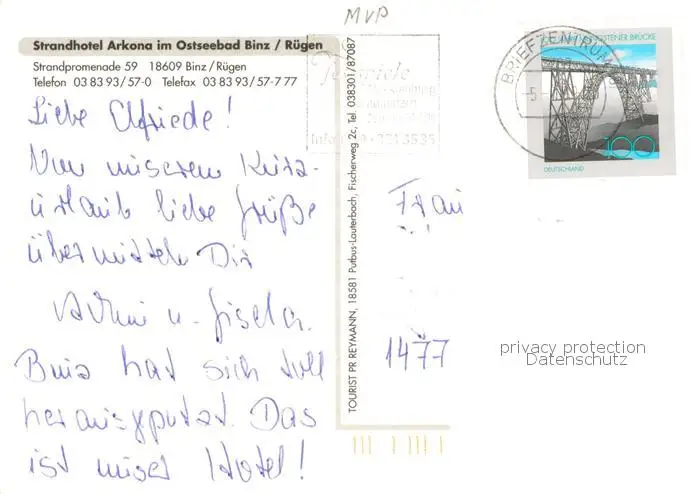 Binz_Ruegen Strandhotel Arkona Strand Binz_Ruegen postalisch gelaufen 1999 Erhaltung siehe scans [LiesaD40] LiesID40