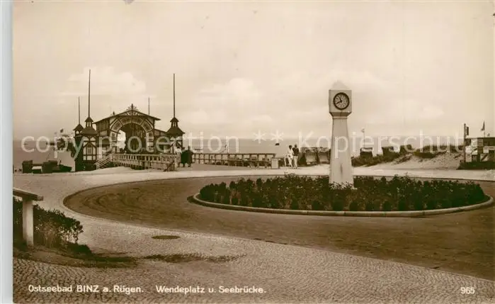 AK / Ansichtskarte Binz_Ruegen Wendeplatz und Seebruecke Standuhr Binz_Ruegen