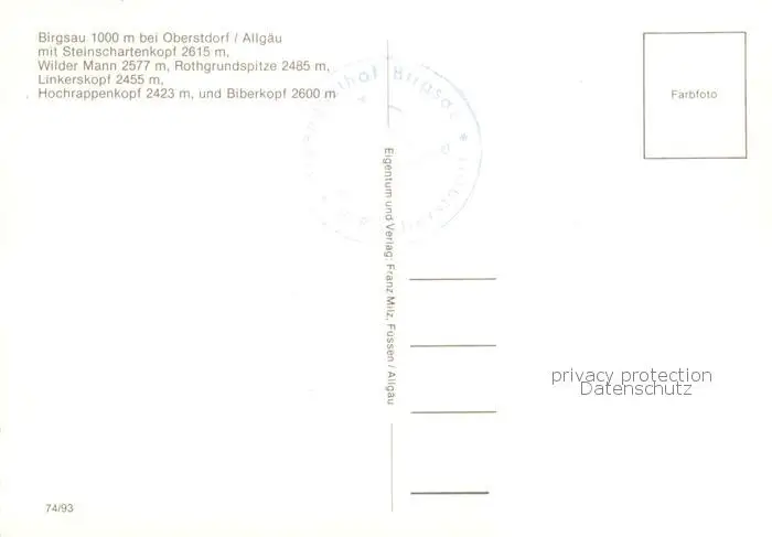 Birgsau_Oberstdorf Steinschartenkopf - Wilder Mann - Rothgrundspitze postalisch nicht gelaufen nach 1965 Erhaltung siehe scans [LiesaD40] LiesID40