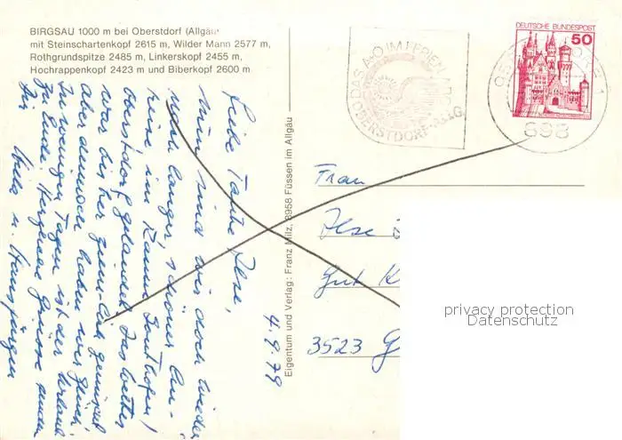 Birgsau_Oberstdorf mit Steinschartenkopf Wilder Mann Rothgrundspitze Linkerskopf Hochrappenkopf und Biberkopf postalisch gelaufen 1979 Erhaltung siehe scans [WerneD78] WernPID7