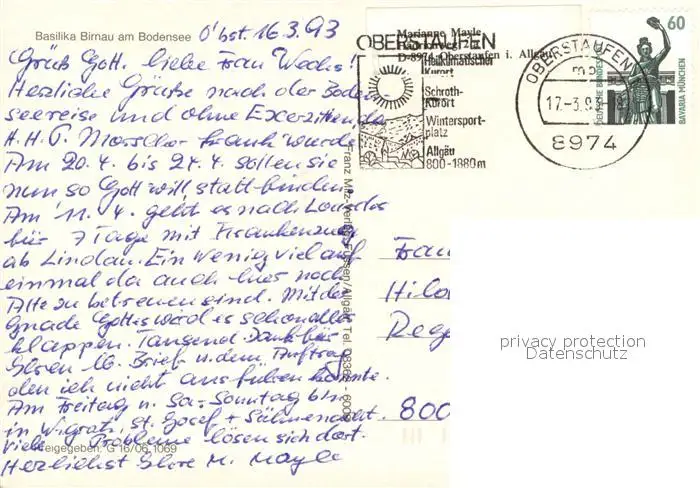 Birnau_Bodensee Basilika Birnau Fliegeraufnahme postalisch gelaufen 1993 Erhaltung siehe scans [FriedD77] Frierer