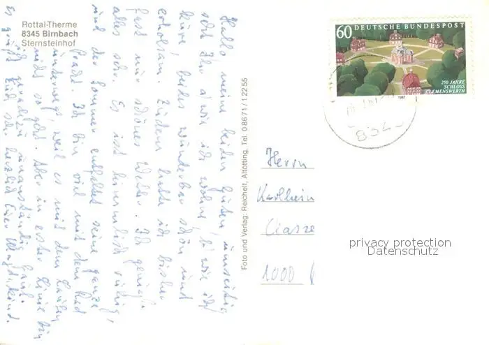 Birnbach_Rottal Rottal Therme Sternsteinhof Birnbach Rottal postalisch gelaufen 1987 Erhaltung siehe scans [FriedD77] Frierer