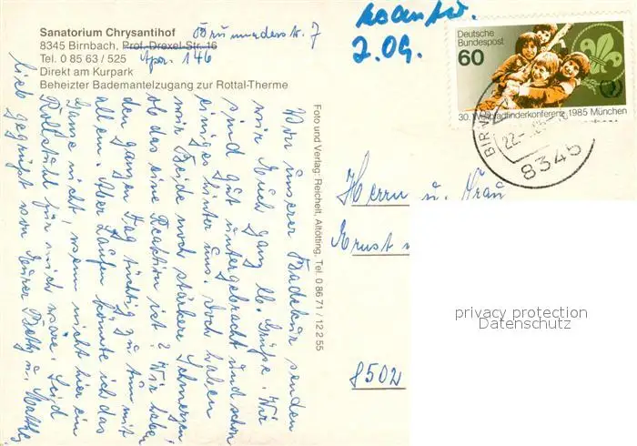 Birnbach_Rottal Sanatorium Chrysantihof Birnbach Rottal postalisch gelaufen nach 1965 Erhaltung siehe scans [KathaD81] Kathoren