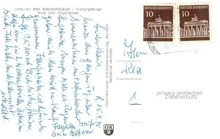 Bischofsgruen Blick vom Huegelfelsen Bischofsgruen postalisch gelaufen 1970 Erhaltung siehe scans [KathaD81] Kathoren