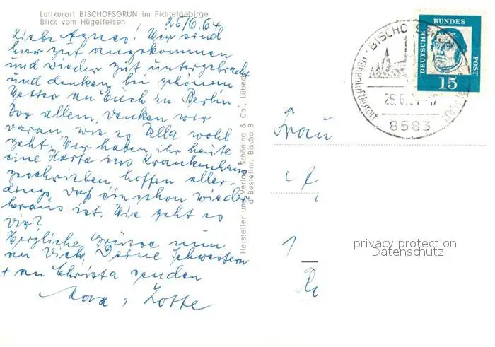 Bischofsgruen Blick vom Huegelfelsen Bischofsgruen postalisch gelaufen 1964 Erhaltung siehe scans [KathaD81] Kathoren