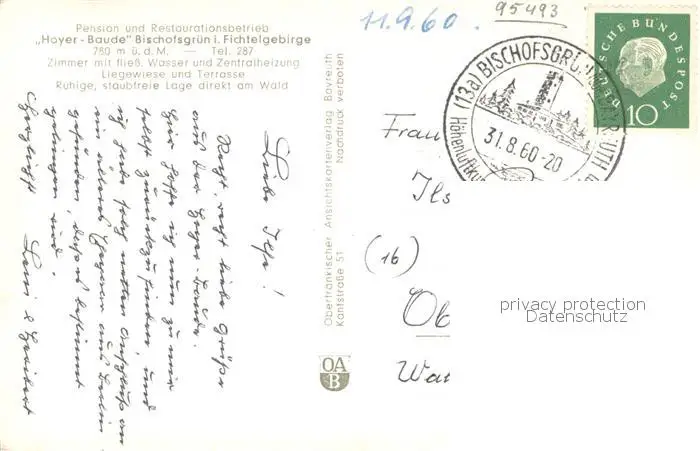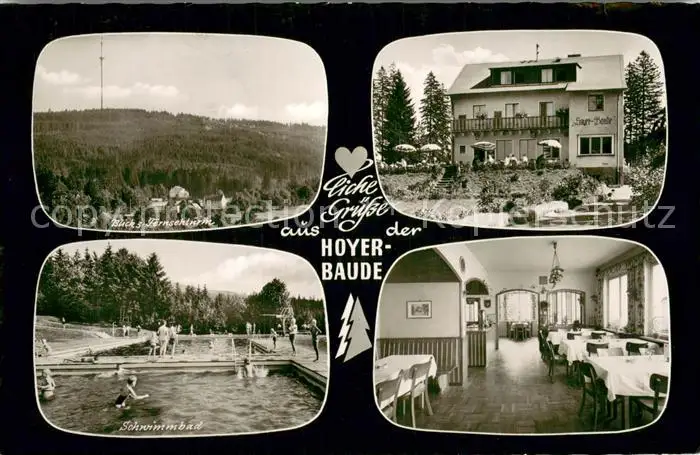 Bischofsgruen Hoyer Baude Fernsehturm Gaststube Schwimmbad Bischofsgruen postalisch gelaufen 1960 Erhaltung siehe scans [WerneD78] WernPID7