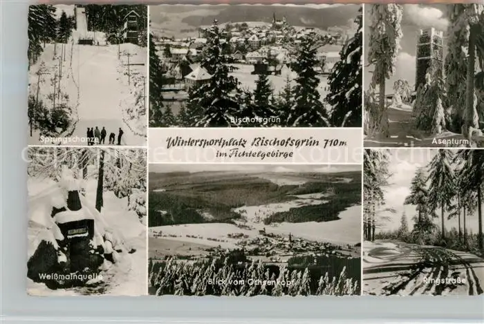 AK / Ansichtskarte Bischofsgruen Sprungschanze Asenturm Ringstrasse Weissmainquelle Bischofsgruen
