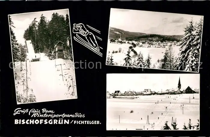 AK / Ansichtskarte Bischofsgruen Sprungschanze Winterpanorama Bischofsgruen