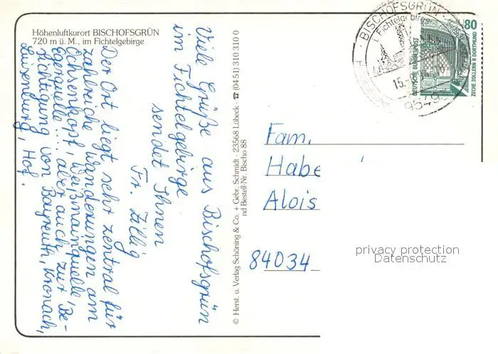 Bischofsgruen Stadtblick Bischofsgruen postalisch gelaufen 1994 Erhaltung siehe scans [WerneD78] WernPID7