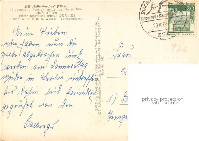 Bischofsheim_Rhoen Berggasthof Pension Rhoenhaeuschen Bischofsheim Rhoen postalisch gelaufen 1968 Erhaltung siehe scans [WerneD78] WernPID7