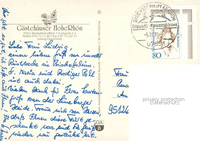 Bischofsheim_Rhoen Gaestehaeuser Hohe Rhoen Bischofsheim Rhoen postalisch gelaufen 1995 Erhaltung siehe scans [FriedD77] Frierer