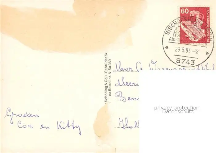 Bischofsheim Rhoen Kategorie Alte Ansichtskarten Postkarten bx59584 Bischofsheim_Rhoen Marktplatz Bischofsheim Rhoen postalisch gelaufen 1983 Erhaltung siehe scans [WerneD78]