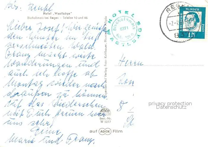 Bischofsmais Kategorie Alte Ansichtskarten Postkarten bx73899 Bischofsmais Hotel Wastls?ge Bischofsmais postalisch gelaufen Erhaltung siehe scans [PaolaD17]