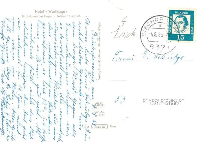Bischofsmais Hotel Wastlsaege Bischofsmais postalisch gelaufen 1963 Erhaltung siehe scans [NatalD47] NataID47