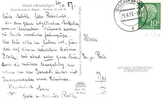 Bischofsmais Hotel Wastlsaege Bischofsmais postalisch gelaufen 1957 Erhaltung siehe scans [WerneD78] WernPID7