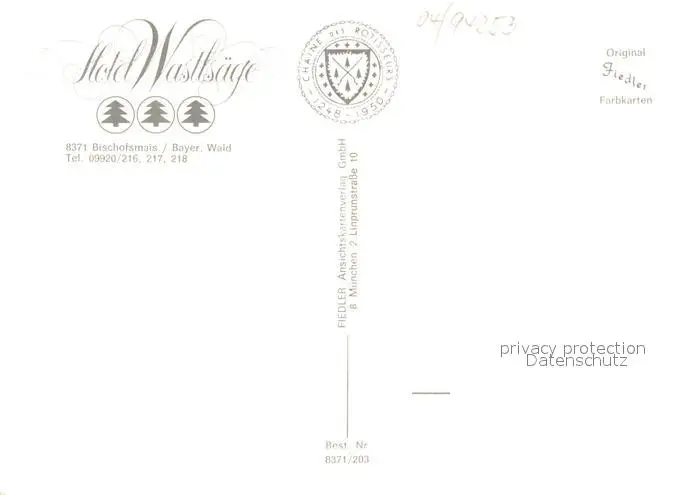 Bischofsmais Hotel Wastlsaege Bischofsmais postalisch nicht gelaufen nach 1965 Erhaltung siehe scans [WerneD78] WernPID7