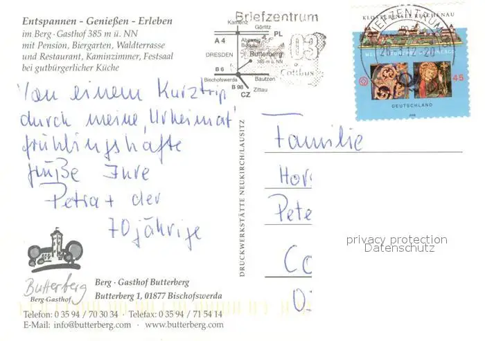 Bischofswerda Berggasthof Butterberg Aussichtsturm Bischofswerda postalisch gelaufen 2012 Erhaltung siehe scans [FriedD77] Frierer