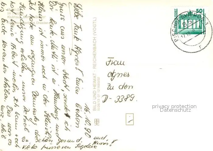 Bischofswerda Markt Tierpark Klubhaus Bertholt Brecht Bischofswerda postalisch gelaufen 1990 Erhaltung siehe scans [FriedD77] Frierer