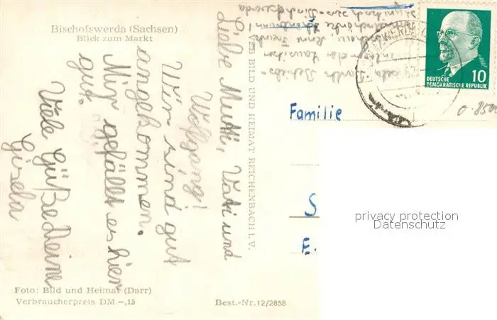 Bischofswerda Marktplatz Bischofswerda postalisch gelaufen 1921-1965 Erhaltung siehe scans [WerneD78] WernPID7