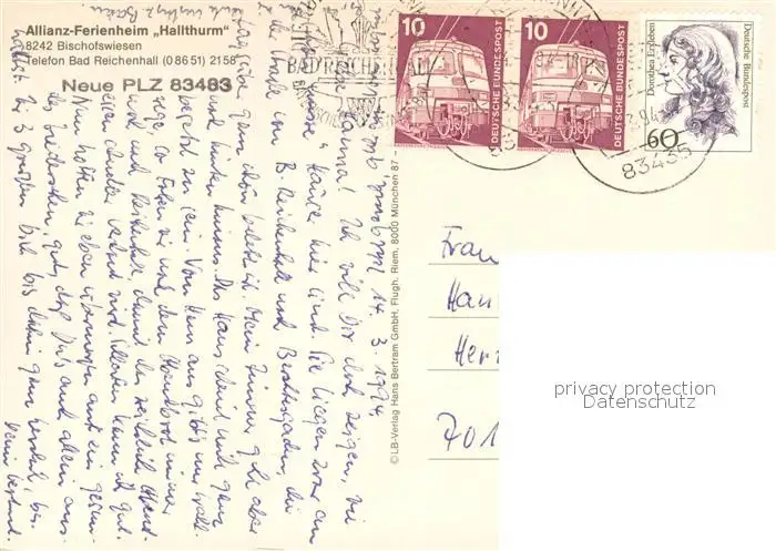 Bischofswiesen Allianz Ferienheim Hallthurm Gastraeume Bischofswiesen postalisch gelaufen 1994 Erhaltung siehe scans [WerneD78] WernPID7
