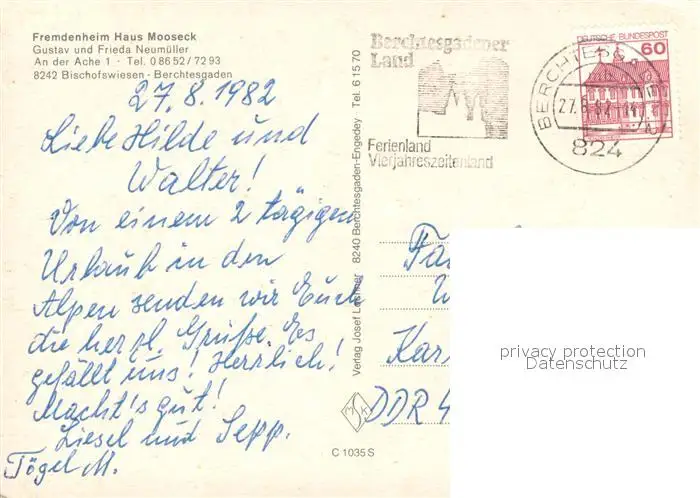 Bischofswiesen Fremdenheim Haus Mooseck Garten Terrasse Bischofswiesen postalisch gelaufen 1982 Erhaltung siehe scans [FriedD77] Frierer