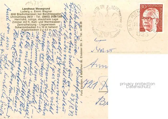 Bischofswiesen Landhaus Moosgrund Schwimmbad Bischofswiesen postalisch gelaufen 1973 Erhaltung siehe scans [FriedD77] Frierer