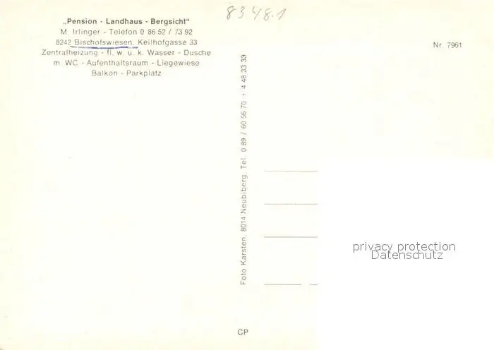 Bischofswiesen Pension Landhaus Bergsicht Bischofswiesen postalisch nicht gelaufen nach 1965 Erhaltung siehe scans [WerneD78] WernPID7