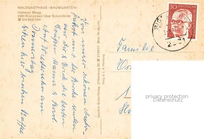Bistensee Waldgasthaus Baumgarten Fliegeraufnahme Bistensee postalisch gelaufen 1972 Erhaltung siehe scans [WerneD78] WernPID7